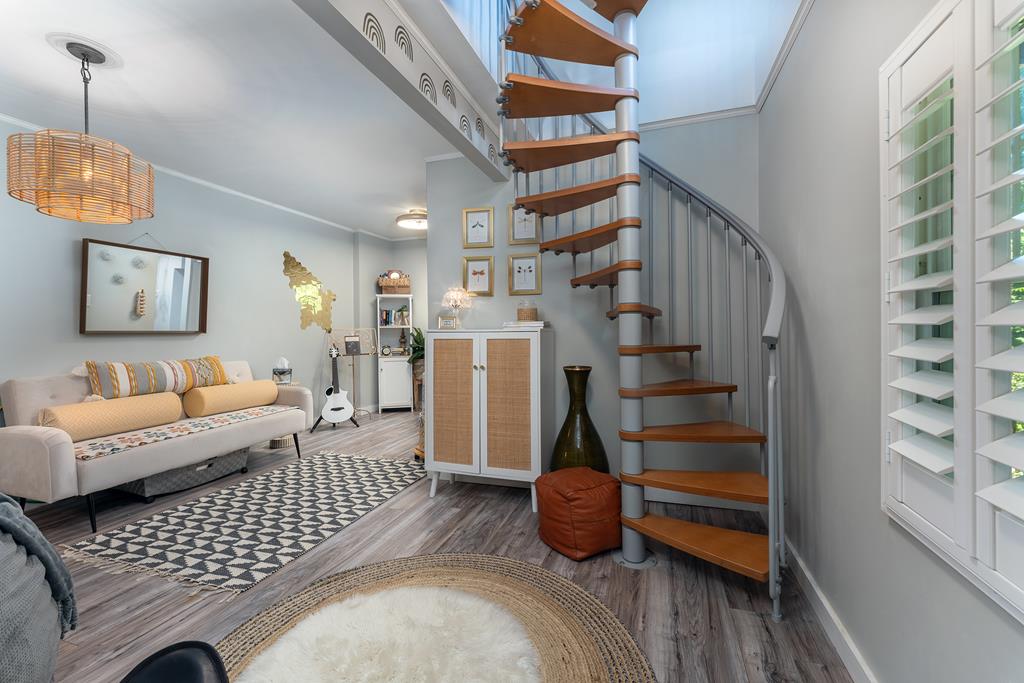 Downstairs, there’s a twin-sized couch bed, plus a Cordaroy's bean bag (As seen on Shark Tank) that unfolds into a full-size bed, adding additional flexibility for guest arrangements. The downstairs bathroom has a shower.